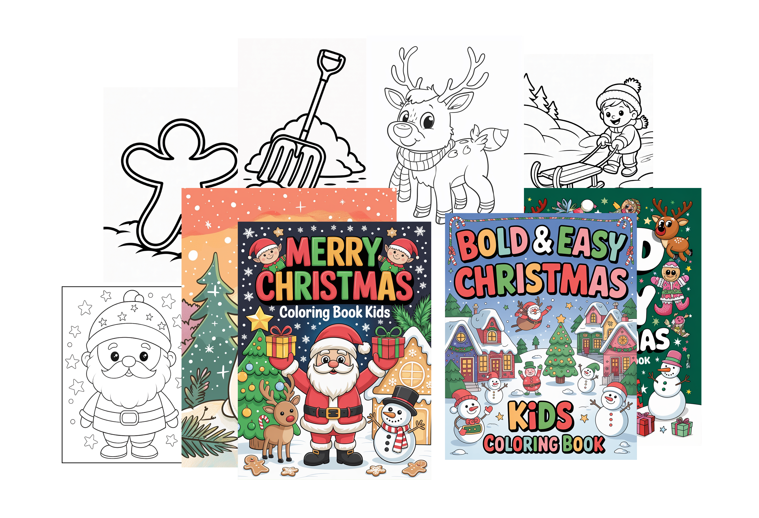 Huge bundle of bold, detailed, kawaii, nativity, gingerbread, and winter character coloring pages.